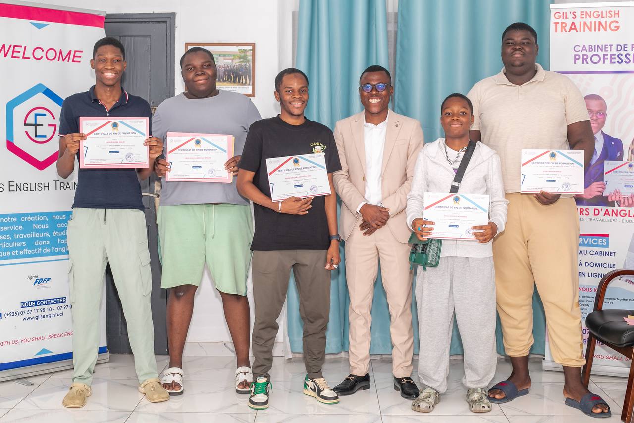 NB: Gil’s English Training vous garantit un développement remarquable en anglais en seulement trois (3) mois de formation et vous délivre un certificat agréé à la fin de votre formation.